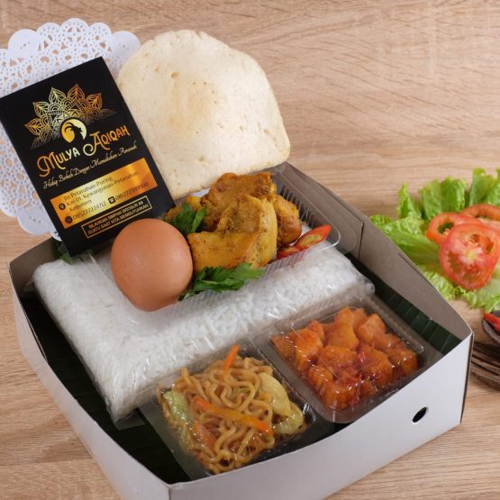 md-back-button-icon Created with Sketch. NASI BOX CATERING PAKET 25K Rincian isi: 1.nasi 500 gram 2.ayam goreng 3.kentang balado 4.mie goreng 5.telur rebus 6.kerupuk udang Rp25.000 Pesan Produk